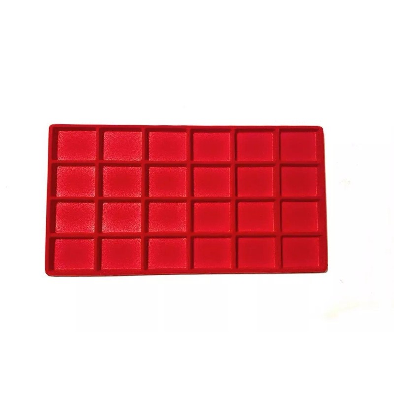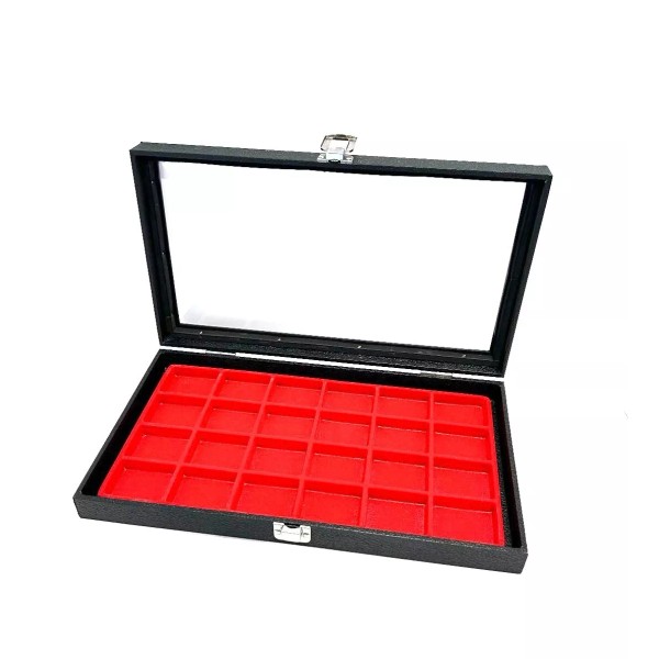 Each case comes with a red 24 space lightweight velvet flock over plastic insert.