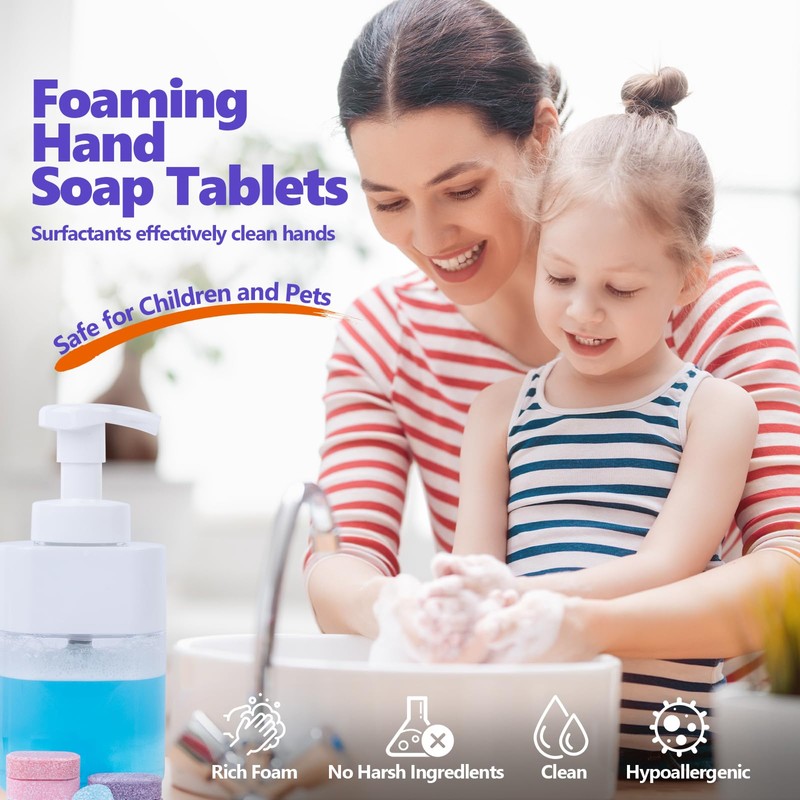 - ✅ HOW IT WORKS: Fill a bottle with warm water, drop in a tablet, twist on the pump and watch it dissolve in 20 to 30 minutes! Enjoy a full bottle of hand soap. Each tablet makes 10 to 13.5 fl oz of foaming hand soap. Compatible with foaming dispensers only.