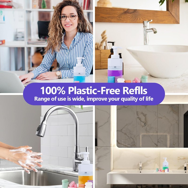 - ✅Plastic-Free Foaming Hand Soap Tablets. Buy the bottle once, and refill forever with 100% plastic-free tablets that come in compostable paper-based packaging.