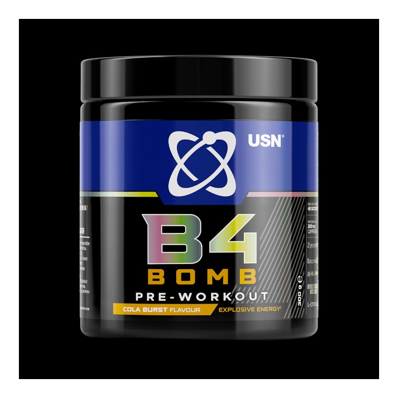 - USN's B4-Bomb provides a premium explosive pre-workout to help break through your plataeu and reach new levels. Take 30 minutes before a workout to give you the energy and support you need.