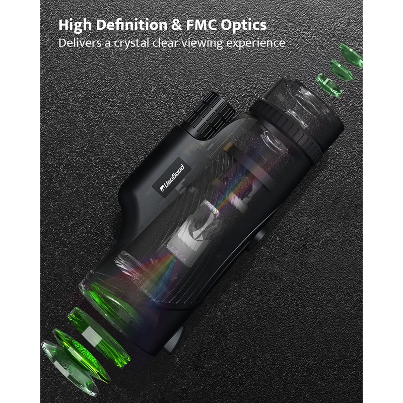 - 【Extremely Lightweight to Carrying Out, Multiple Carrying Options】This monocular comes with a hand strap and double lens covers, all that weighs less than 9 oz, which is light as your smartphone! Also comes with a soft case with a neck strap, so you can easily take it outside. Perfect for bird watching, deer watching, sporting events, etc.