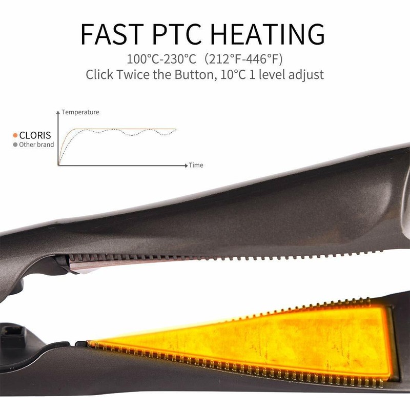 • Adjust the temperature by rotating the bottom. Temperature adjustment range is 140-230°C (280-450°F) , adjustment unit is 10°C which is perfect for all hair types, and it with convenient LCD display.