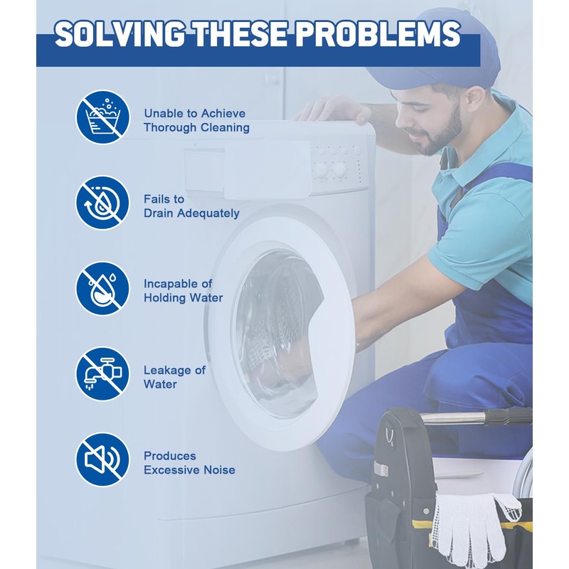 - Solving these issues: Fails to clean effectively; problems with the machine's water intake and drainage; loud nosie; leakage issues or error indication