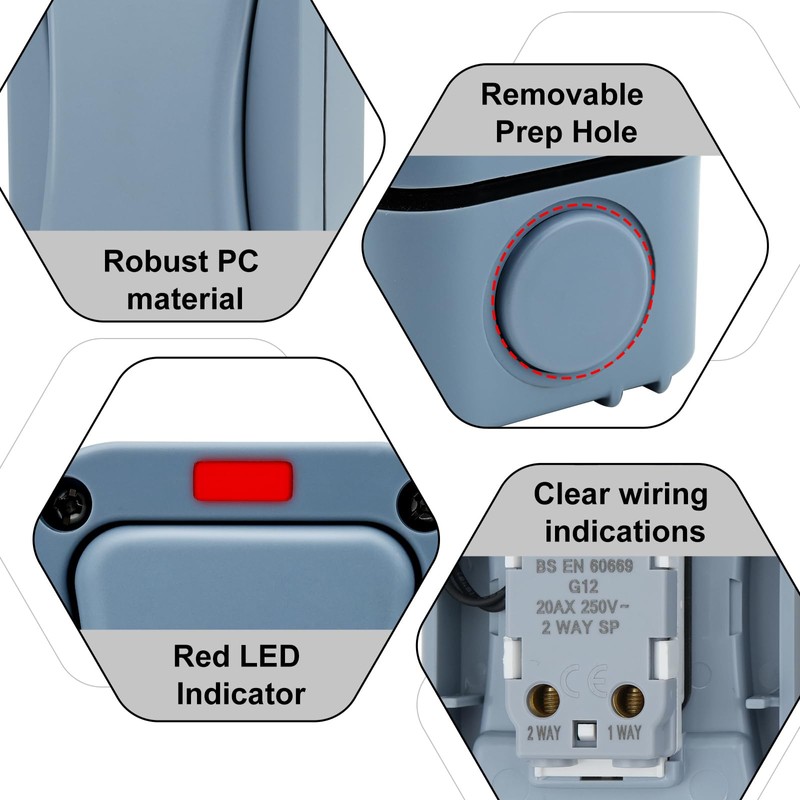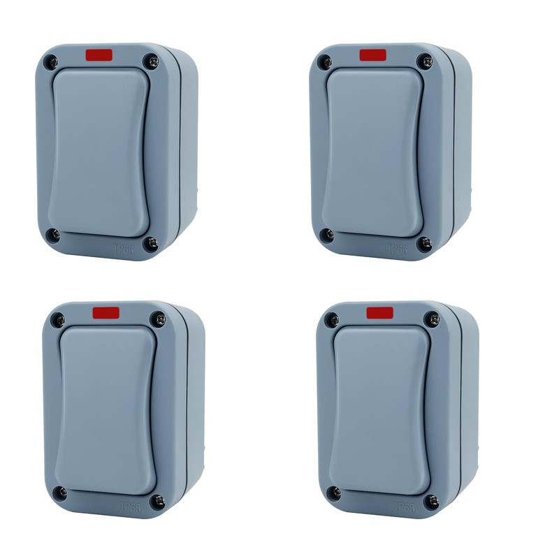 • 【Slim Outdoor Waterproof Switch】 IP66-rated outdoor switch, 4 gang SPDT, ultra slim waterproof and dustproof for safe outdoor use in gardens, patios, balconies, pools, and workshops.