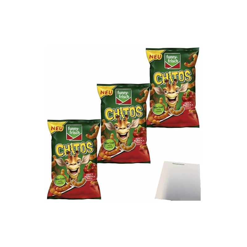 usy Bundle: funny fresh Chitos Juicy peppers style pack of 3 (3 x 80 g pack) compatible with funny fresh Chitos Juicy peppers style pack of 3 (3 x 80 g pack) funny fresh Chitos Juicy pepper style pack of 3 (3 x 80 g pack) ingredients: corn grits (69%), sunflower oil, table salt, sugar, paprika rika powder ,feextract, onion powder, tomato powder, apricot powder, saline substitute potassium chloride, garlic powder, chilli powder, acidifier (citric acid), spice, ground peanut kernels, herbs, natural aroma. Nutritional values: nutritional values per 100 ml in ml: 2101KJ/502Kcal/fat: 25>of which saturated fatty acids:3.6 >of which unsaturated fatty acids:0>of which polyunsaturated fatty acids:0/carbohydrates:60>of which sugar:3.6/protein:6.3/salt:1. 6 Allergene: maize and products derived from it; possible allergens contained: no allergens subject to labelling according to the target market-specific regulations contained manufacturer of the individual products: usy Product:brabanat EURL,40rue d Dt.M.Deutsch,F-67250 Soultz-Sous-Forets other products in bundle: Intersnack Deutschland Se,. Erna-Scheffler-Straße, 3, 51103 Cologne, Germany. Notes: Storage note: Store in a cool and dry place. Warning: Danger: