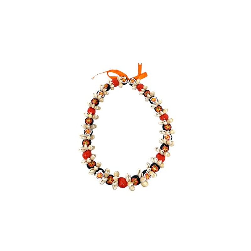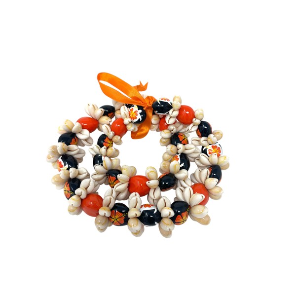 Utama Hawaiian Flower Kukui Nut Lei with Cowrie Shell (Orange)