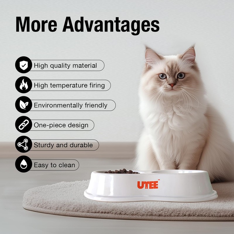 UTEE Cat Double Feeder Bowls, One-Piece Design Feeders Water and Food Bowls for Cat Pet Feeder Bowls - Cat