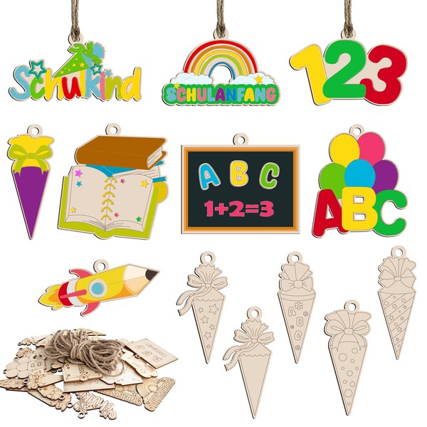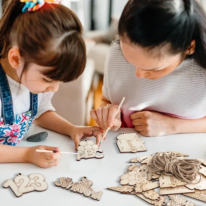 UTEFIF Schulkind 2024 First Day of School Gift, 39 Pieces Wooden Enrolment Craft Set, Sugar Bags for Painting, First Day of School, Wooden Craft Set, School Introduction Creative Sets for Boys Girls