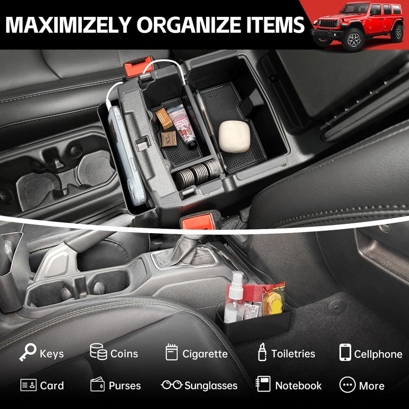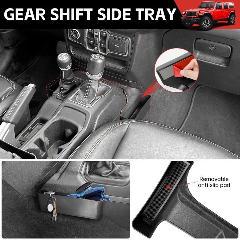 Utiiy Center Console Organizer for 2024 2025 Jeep Wrangler JL JLU 4XE/Gladiator JT Gear Shift Console Side Tray GrabTray Passenger Hanging Armrest Storage Box for Wrangler&Gladiator(24+ 4-piece)