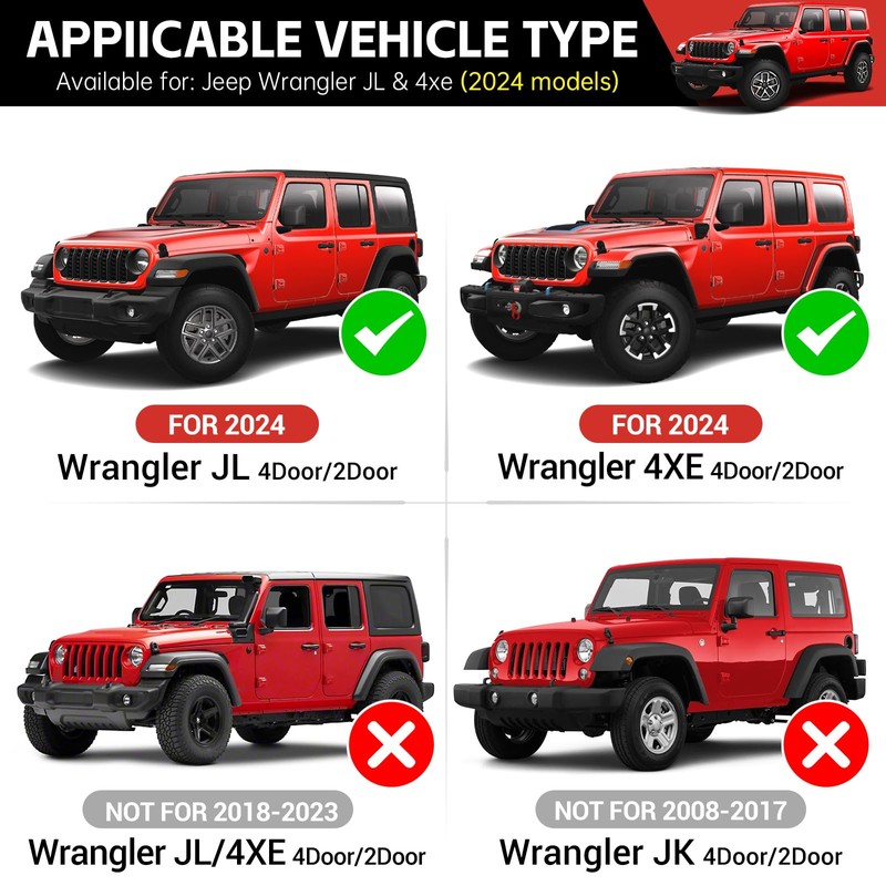 - Fit for 2024 Jeep Wrangler JL JLU 4XE&Gladiator JT(Not for JK or 2018-2023 model)