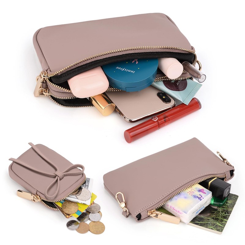- Large capacity shoulder bag – main pocket with double zip. It contains 3 inner card slots and 1 inner zipper pocket. The mobile phone case and small coin bag are also equipped with a zip that is safe and easy to use. Your mobile phone, money, credit cards, ID cards, keys, headphones, lipsticks, makeup and other important items can be well organized in this shoulder bag.