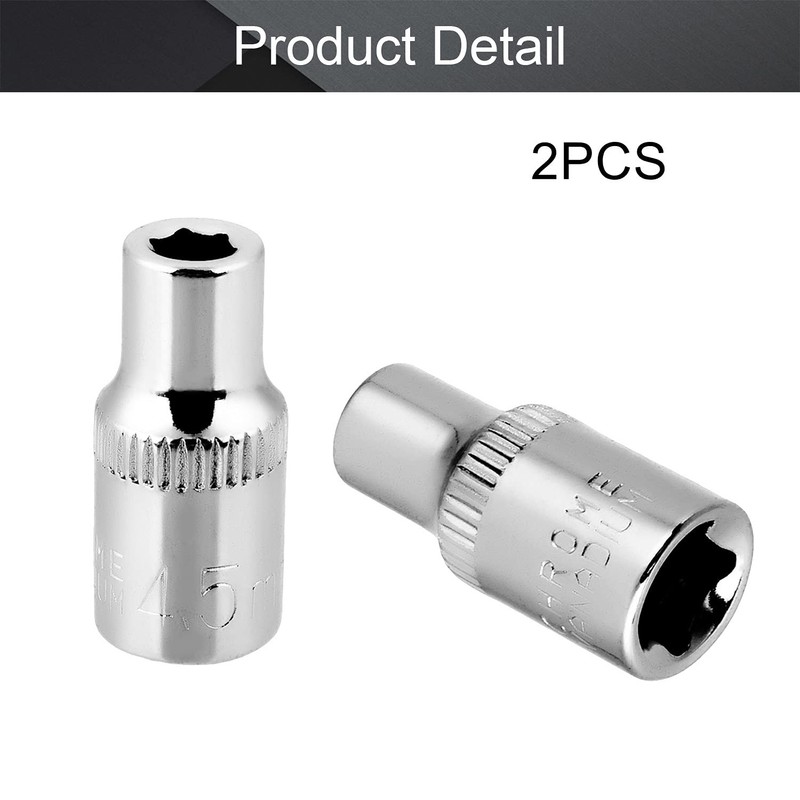 Utoolmart Shallow Socket, 1/4 Inches Drive 6-Point Socket, 4.5mm Metric Socket, Chrome Vanadium Steel Chrome Finish, for General Repairs, 2 Pcs