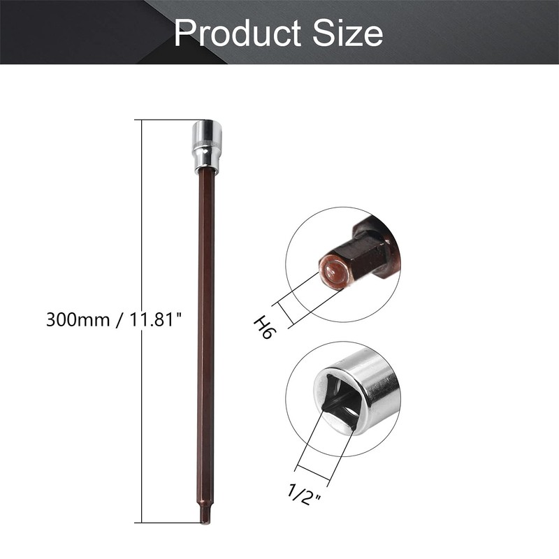 • 【SIZE】H6 (6mm) hex bit socket, 1/2 inch drive, 11.81 inch (300mm) total length.