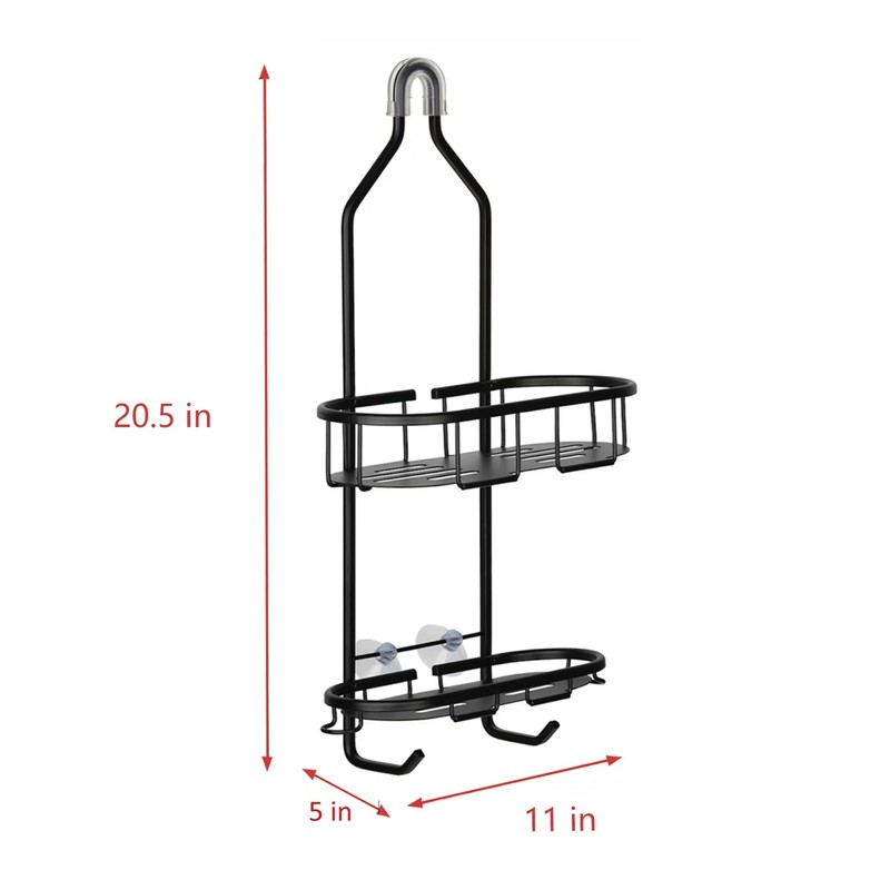 - ENJOY EASY AND NO MESS WATER DRAINAGE: This aluminum shower caddy's two individual shelves for storage, each with its own drainage slot. Overall dimensions of 11" L x 5" D x 20.5" H, with shelves of 11" L x 5" D x 2.3" H and 11" L x 4" D x 0.9" H, allowing you to store all your items in an organized way. This shower caddy is a durable, space-saving, and adjustable design that is easy to maneuver and offers plenty of storage, and is built to last through all of your daily shower needs!