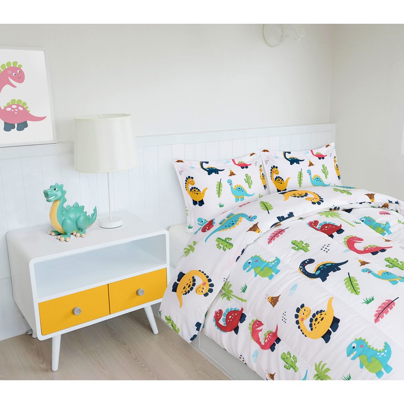 - Perfect For Boys and Girls - the animated dinosaur themed, print design comforter set is perfect for any kid’s bedroom whether it’s a boy or a girl