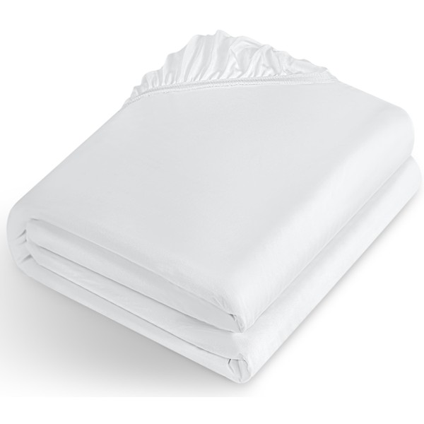 Utopia Bedding Wasserdichter Matratzenschoner, 150 x 200 x 30 cm, für Matratzen bis 30 cm Höhe, Leichter und Weicher Jersey-Matratzenbezug mit Dehnbarem Sitz - Weiß