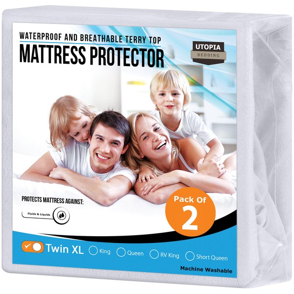 Utopia Bedding Waterproof Mattress Protector Twin XL Size 2 Pack, 200 GSM Bre...