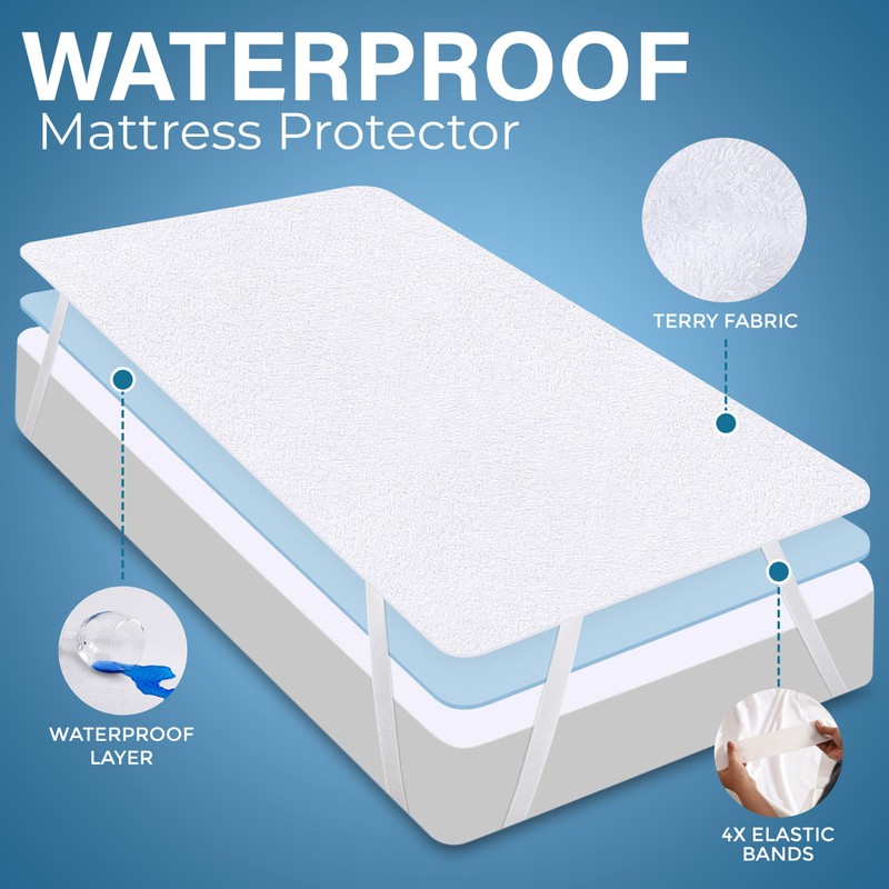 - Waterproof: The Waterproof top layer lets air to circulate through but repels fluids & liquids thus keeping your mattress dry and stain-free