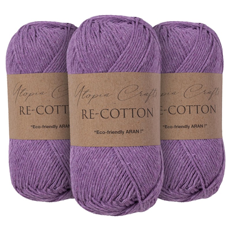 Utopia Crafts Re-Cotton Knitting Yarn 3X 100g (Muted Purple)