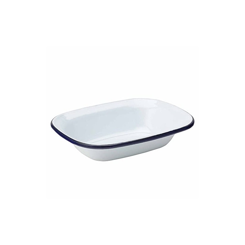 Utopia Eagle Enamel Pie Dish 7.8" /20cm - White Oblong Cookware with Blue Edge for Oven to Table Presentation