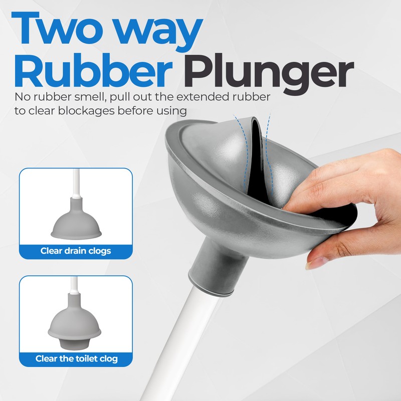 - Powerful Suction Plunger – The rubber plunger cup offers an efficient experience of clearing waste from the drains. The extensible flange, folded within the plunge cup, fits deep into the bowl for effortless but effective suctioning