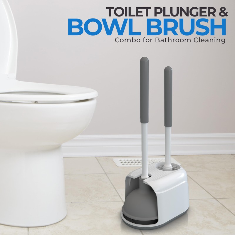 Utopia Home Toilet Plunger - Toilet Brush and Plunger Set for Bathroom - Toilet Plunger and Brush Set with Holder for Deep Cleaning (White/Grey)