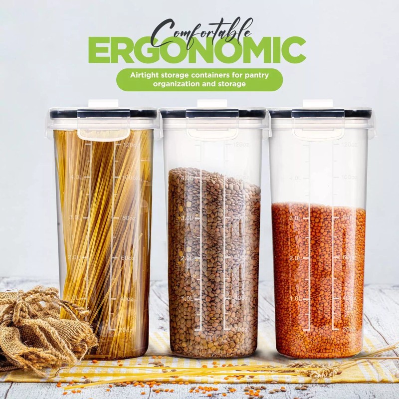 • Dynamic Usage - These containers are undoubtedly one of the must-have home accessories as they can handily store cereal, flour, sugar, coffee, rice, grain, beans, nuts, snacks, pet food, baking supplies & more.