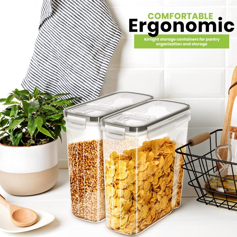 - IDEAL FOR STORAGE - Each of the airtight food storage containers accommodates an airtight leakproof lid preventing any accidental spills and preserving freshness for a long. The cereal storage accessory also has a pouring spout on the lid for better convenience.