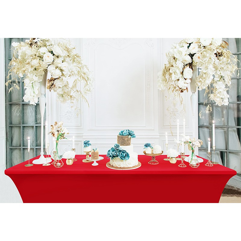 Utopia Kitchen Utopia Kitchen Spandex Tablecloth 2 Pack [6FT, Red] Tight, Fitted, Washable and Wrinkle Resistant Stretch Table Cloth Rectangle Cover for Trade Show, Weddings & Parties [72Lx30Wx30H Inch]