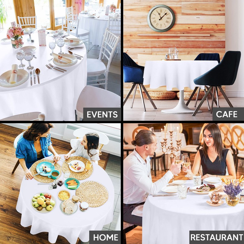 - Exceptional Craftsmanship: Measuring 60 Inch, our stunning White table cloth is meticulously crafted from smooth, thick polyester, ensuring a snag-free and durable fabric that adds an eye-catching touch to any kitchen table, dining room table, or buffet table