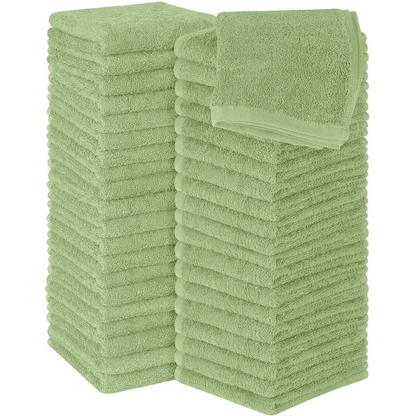 Utopia Towels 60 Pack Cotton Washcloths Set - 100% Ring Spun Cotton, Premium Quality Flannel Face Cloths, Highly Absorbent and Soft Feel Fingertip Towels (Sage Green)