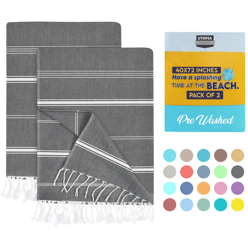 Utopia Towels Utopia Towels Pack of 2 Turkish Beach Towel, 40 by 72 Inches, Oversized 100% Cotton, Sand Free Lightweight Absorbent Quick-Dry Beach Blanket, Extra Large Turkish Bath Towels for Travel and Pool, Grey
