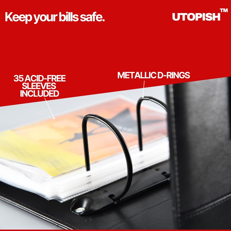 - KEEP YOUR BILLS SAFE - From Acid-free Sleeves to Metallic D-rings attached to the back of the binders instead of the spine to prevent bills from bending, and a sturdy PU leather cover that also looks beautiful are some of the features to make sure your collection will be safe for years