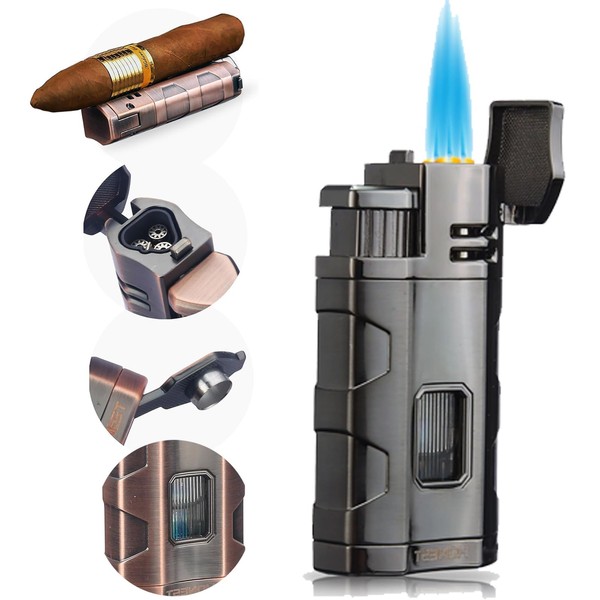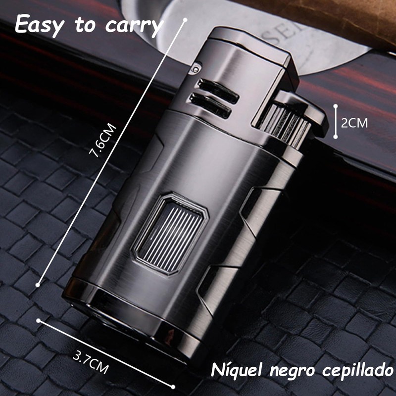 UTRHHVS Encendedor de Antorcha a Prueba de Viento, Triple Chorro de Llama, Gas Recargable de Butano Resistente al Viento Con Caja de Regalo (Sin Butano)