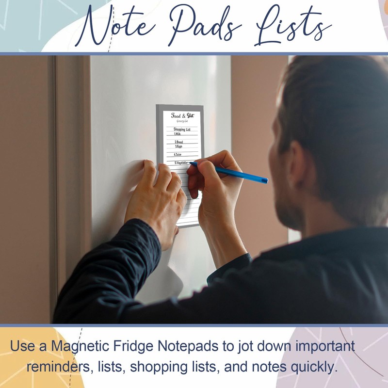 - Save time and trouble: A total of 2 magnetic notepads for refrigerator, 100 pages/book grocery list magnet pad for fridge. Put it in a convenient place like the refrigerator, locker, filing cabinet, etc. Jot down important notes, appointments, plans, or reminders so that you don't forget anything important.