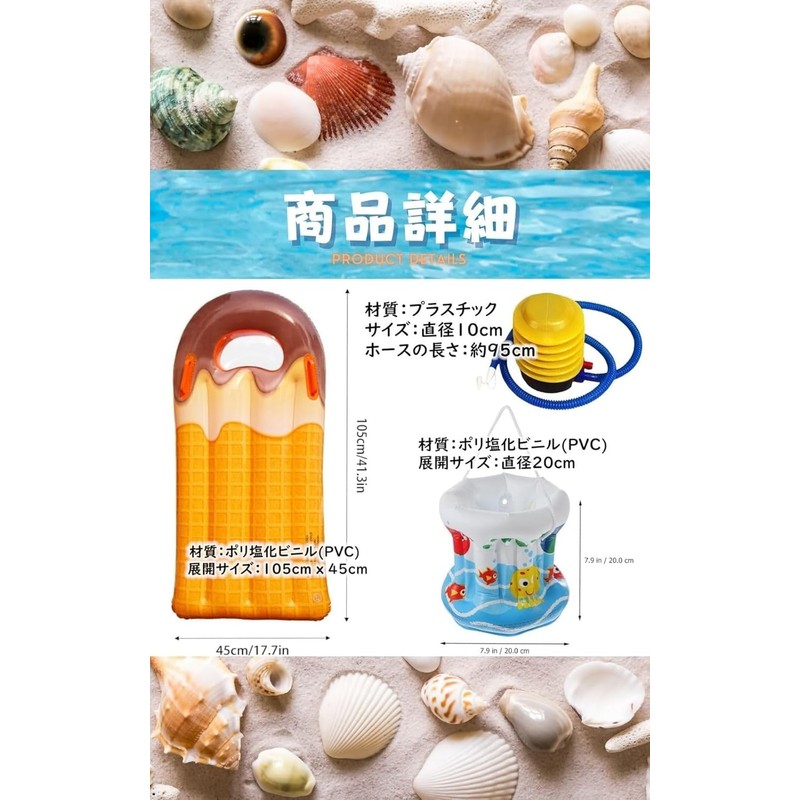 Snorkeling float, water scope and pump set. Since there is no need to put your face into water, it can be used for a wide range of activities such as camping and outdoor activities such as swimming pools and citizen pools. This is a fun floatation item that allows you to lie down and observe the water in the ocean, so even those who are not good at swimming or who don't like putting their face on the water, this is a convenient pool item that can look into the water.