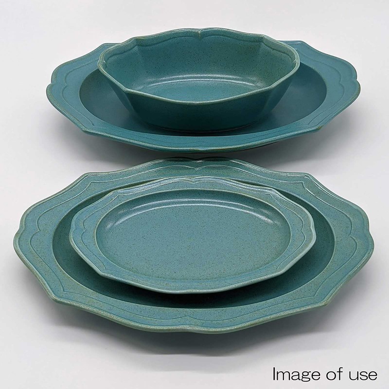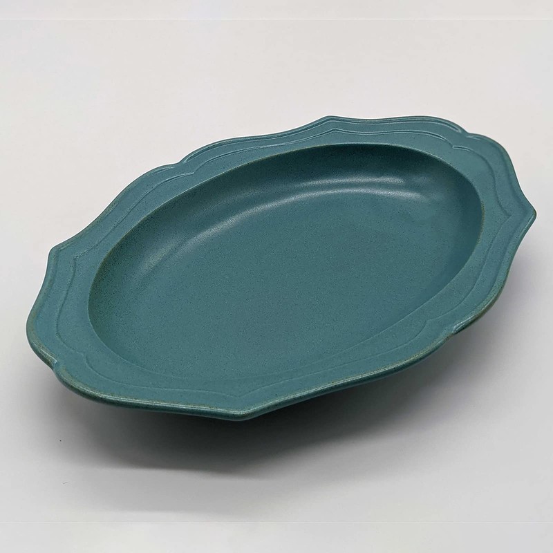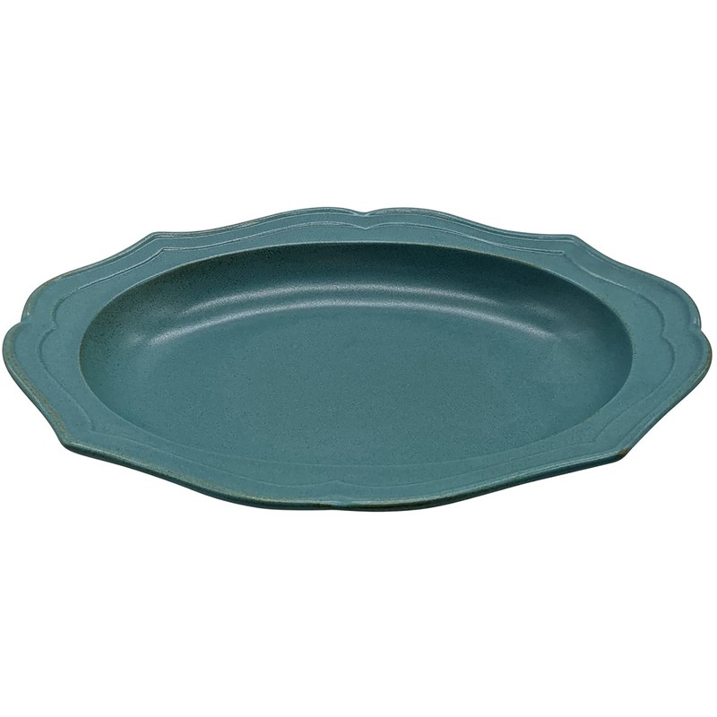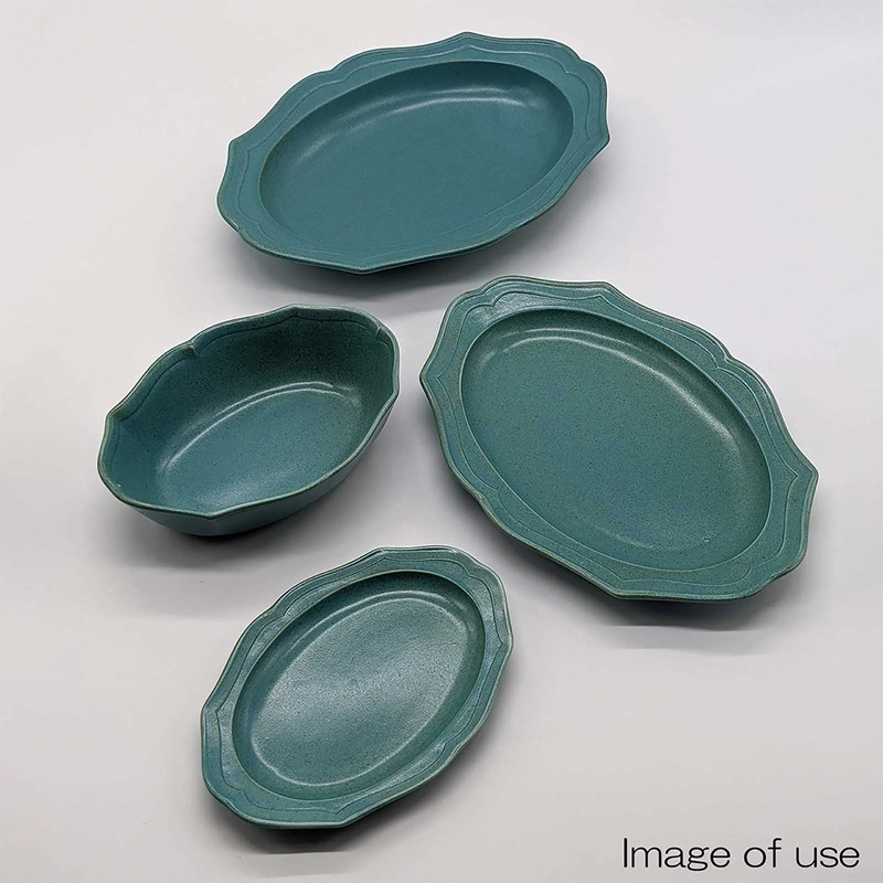 Utsuwa Roan 513-0033 Mino Ware Oval Curry Pasta Soup Plate, Approx. 10.6 x 7.5 inches (27 x 19 cm), Cadre Cardle, Green, Bronze, Made in Japan