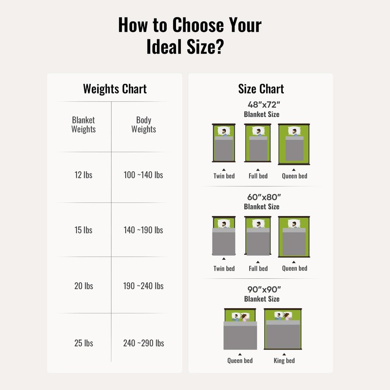 - Using the Blanket: Our Sherpa fleece weighted blankets are meant to be used individually. We recommend you choose a blanket weighing about 10% of your body weight plus 1 pound. This 15 lbs weighted blanket is intended for individuals weighing about 140 - 190 lbs. Please refer to our size chart or contact us for more precise sizing