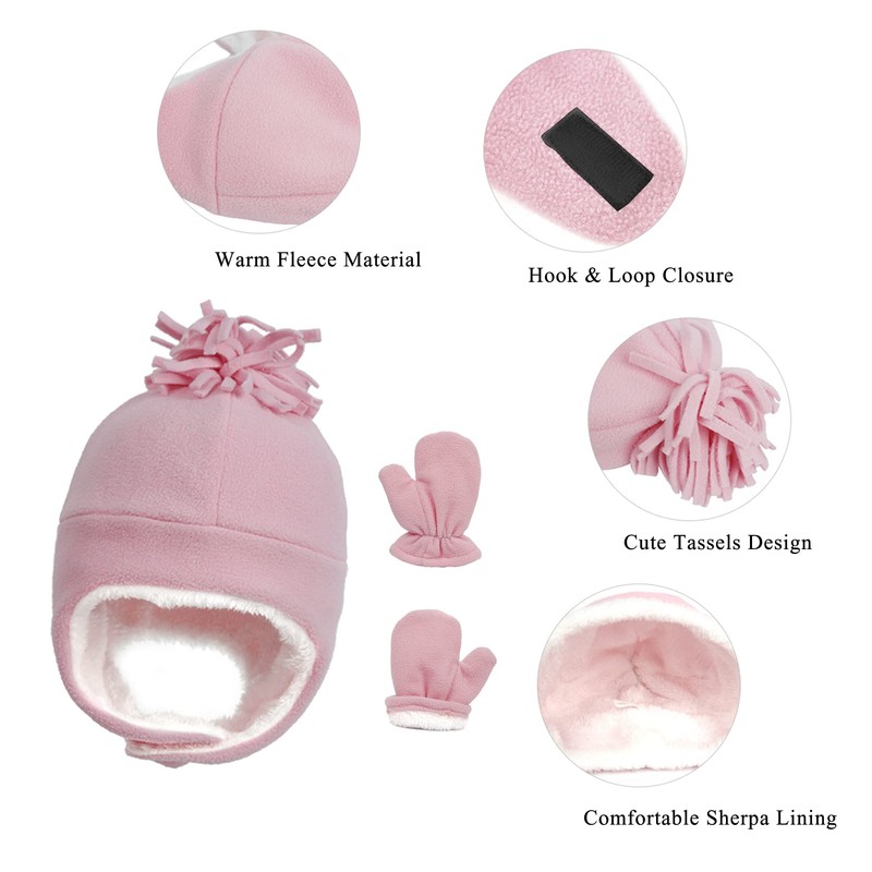 - Gorro de piloto bonito y elegante: diseño clásico probado en el tiempo, cuenta con una borla trenzada colgante por excelencia en la parte superior para mayor estilo. Juego de gorras y manoplas con capucha para orejeras, protege perfectamente la cabeza, la cara, las orejas y las manos de tu bebé