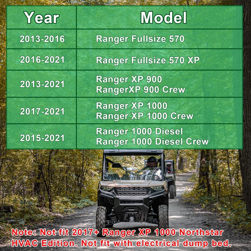 - đăWide Applicationă: This Full lift kit Installed with stock tires and wheels, is compatible with Polaris Ranger Fullsize 570 2013-2016,Fullsize 570 XP 2016+,XP 900 2013-2021,XP 900 CREW 2013-2021,XP 1000 2017-2021,XP 1000 CREW 2017-2021,1000 Diesel 2015-2021,1000 Diesel CREW 2015-2021;Not fit 2017+ Ranger XP 1000 Northstar HVAC Edition,Do not fit with electrical dump bed
