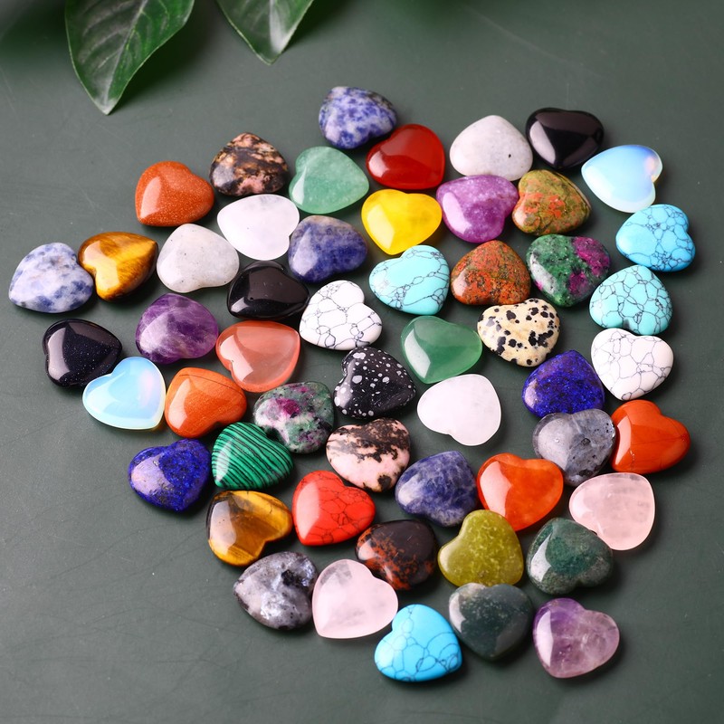 - Package and Quartity:The package contains 10 pieces of heart shaped crystals in assorted colors,various heart shaped crystal stones are sealed in a rectangular box. The color of the stone is colorful, meanings you will receive unexpected surprises.variety hearts are impressive,like(rose quartz,amethyst,tiger eye,green aventurine,black obsidian,red jasper and lapis lazuli)
