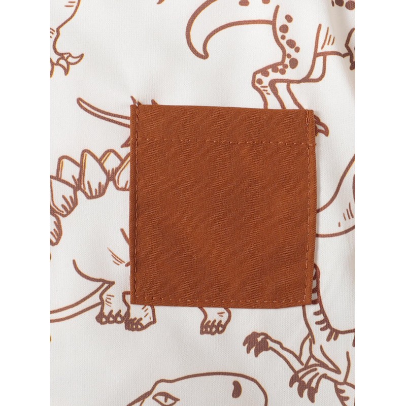 UUAISSO Kleinkind Baby Jungen Sommerkleidung Kurzarm Dinosaurier Taschen Top und Einfarbige Shorts Baby Jungen Outfits Set Braun 2–3 Jahre