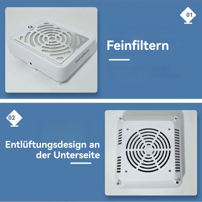 - 【Leistungsstarke Staubabsaugung für Nägel】Ausgestattet mit einem 40W Hochleistungsmotor bietet dieser nagelstaubsauger eine starke Saugkraft und entfernt effektiv Feilstaub beim Schleifen, Polieren oder Fräsen. Ob bei Natur- oder Kunstnägeln – dieser nail cleaner sorgt für ein sauberes und angenehmes Arbeitsumfeld, ideal für den professionellen Einsatz am nageltisch mit absaugung oder zu Hause.