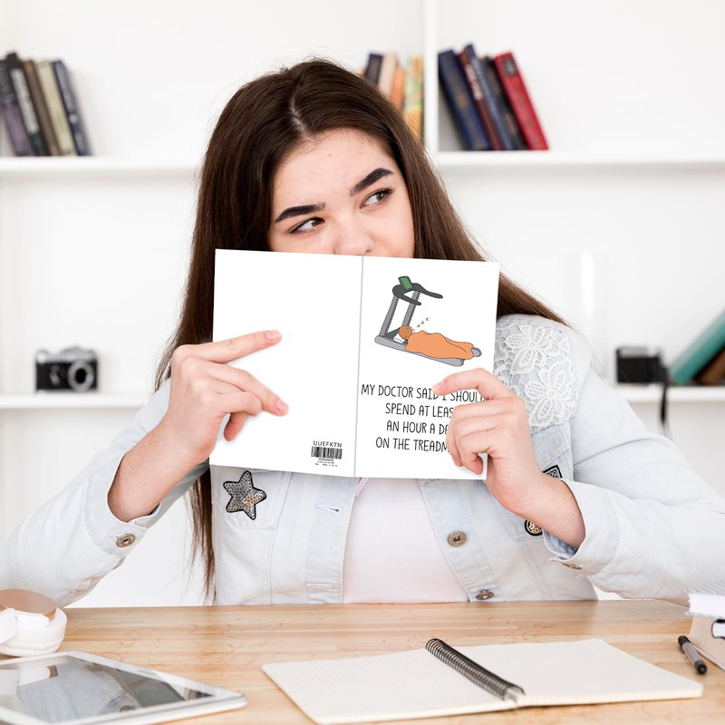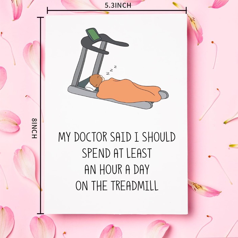 UUEFKTN Funny Birthday Card, Gym Treadmill Fitness Theme, Blank Inside for Personal Message, Greeting Card for Mom Dad Friend