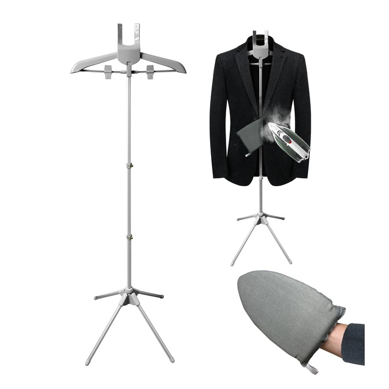 UUFCTY Garment Steamer Hanger with Ironing Glove, Portable Steamer Rack for Clothes, Garment Rack for Steaming Clothes Adjustable Handheld Hanging Ironing Clothes Stand