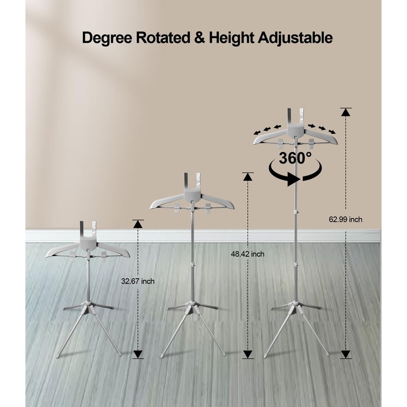 - 【360 Degree Rotated & Adjustable】The Handheld garment steamer rack can be rotated 360 degrees, easy to use. The garment steamer hanger is also adjustable to 3 heights: 32.67'', 48.42'', 62.99'' to suit your needs, very convient.