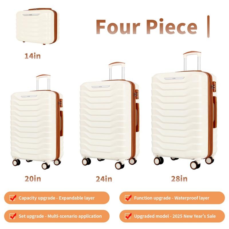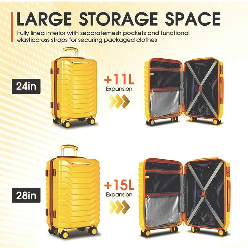UUH Expandable Luggage Sets 9pcs/8pcs/7pcs/4pcs/3pcs Suitcase Sets With Water-Proof and Expandable Layer Makeup Bag Side Hooks And TSA Lock:_4pcs-Golden Yellow