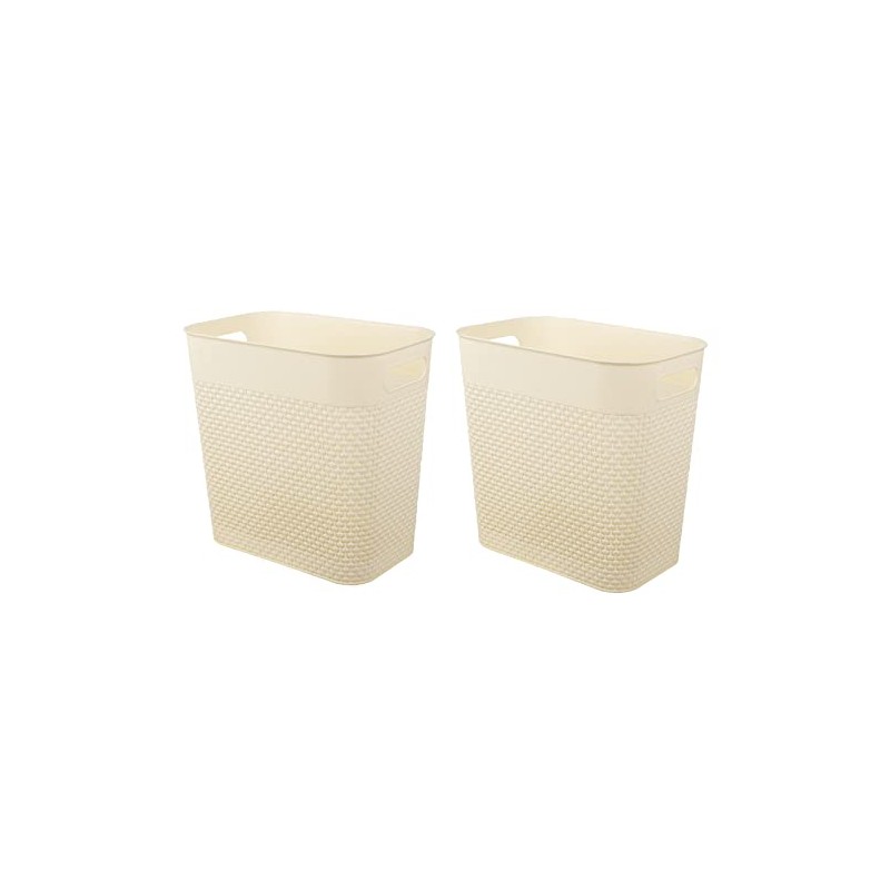 UUJOLY Plastic Small Trash Can Wastebasket, Garbage Container Basket for Bathrooms, Laundry Room, Kitchens, Offices, Kids Rooms, Dorms, (Beige, 2 Pack/3 gallons)
