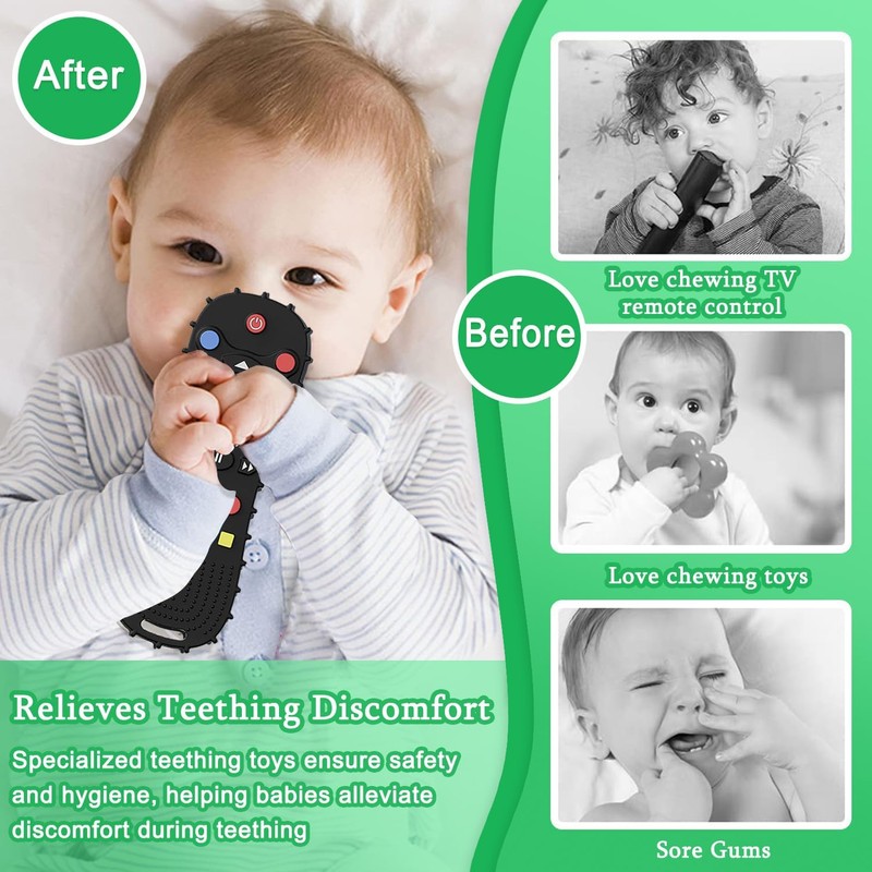 - MORDEDERA CONTROL REMOTO: Nuestra mordedera en forma de control remoto llamará la atención de tu bebé, ya que es súper realista. Los juguetes de dentición para bebés ayudan a aliviar las molestias de dentición y masajean las encías ayudando a la estimulación de las encías para el crecimiento de los dientes.