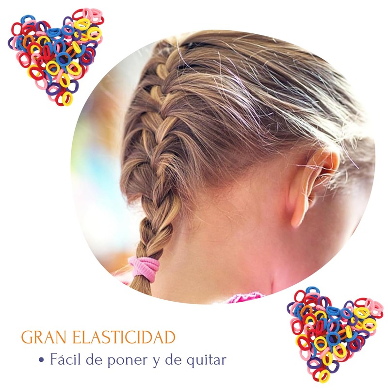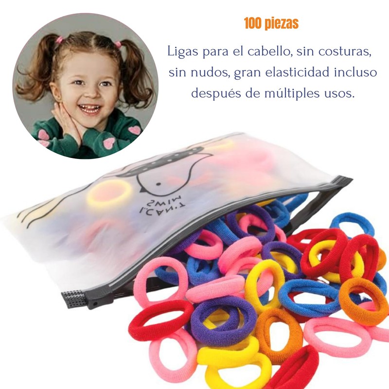 • Cantidad: Recibirás 100 ligas para el cabello en 6 diferentes colores y una práctica bolsita con zipper, para que siempre las mantengas todas juntas y sea mucho más fácil y rápido el peinado.